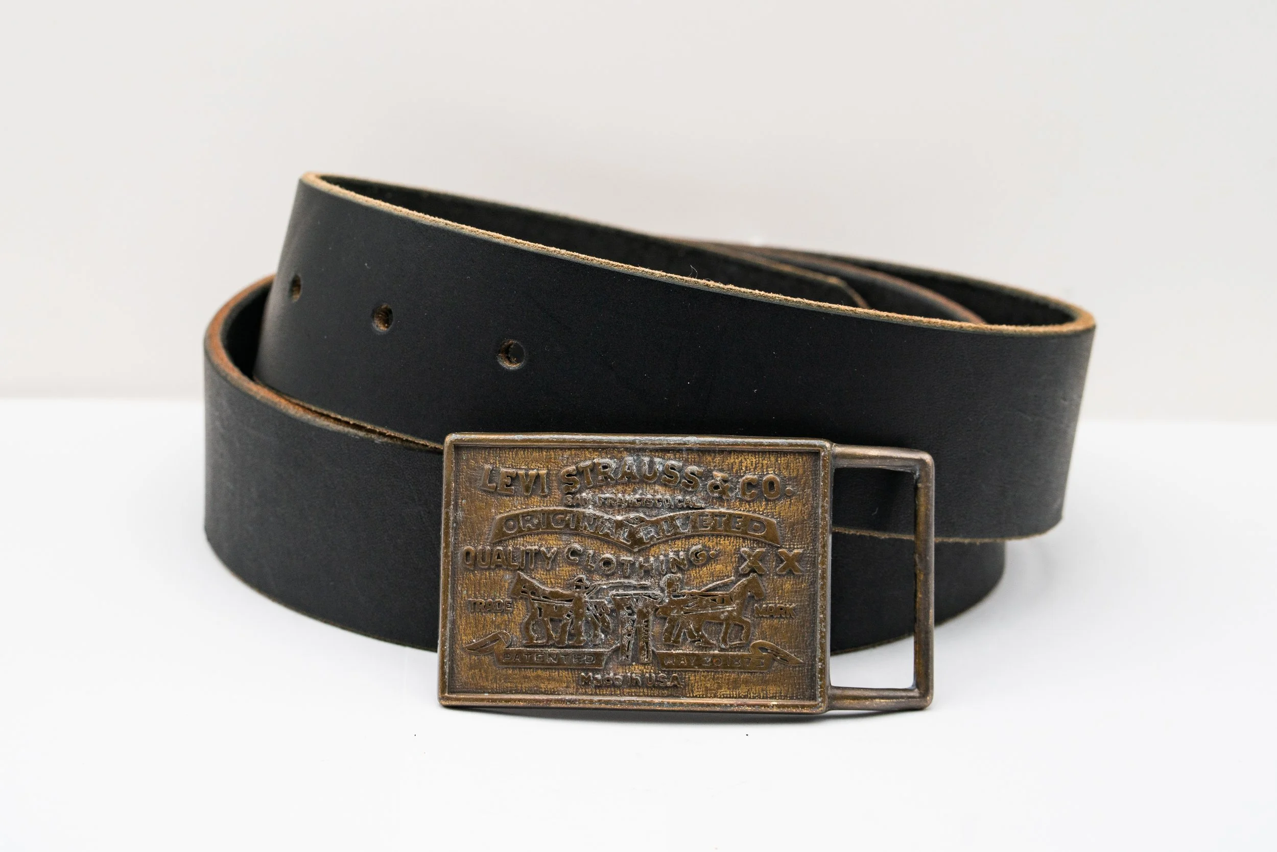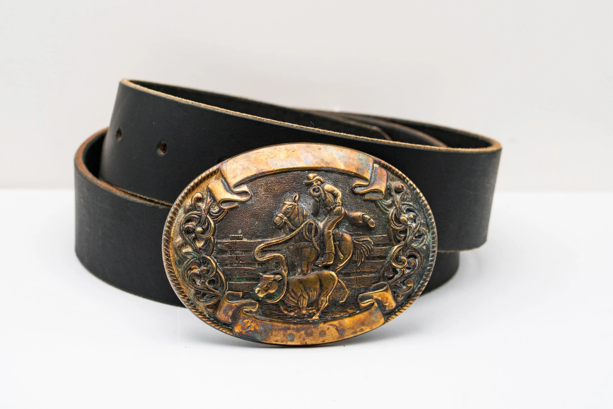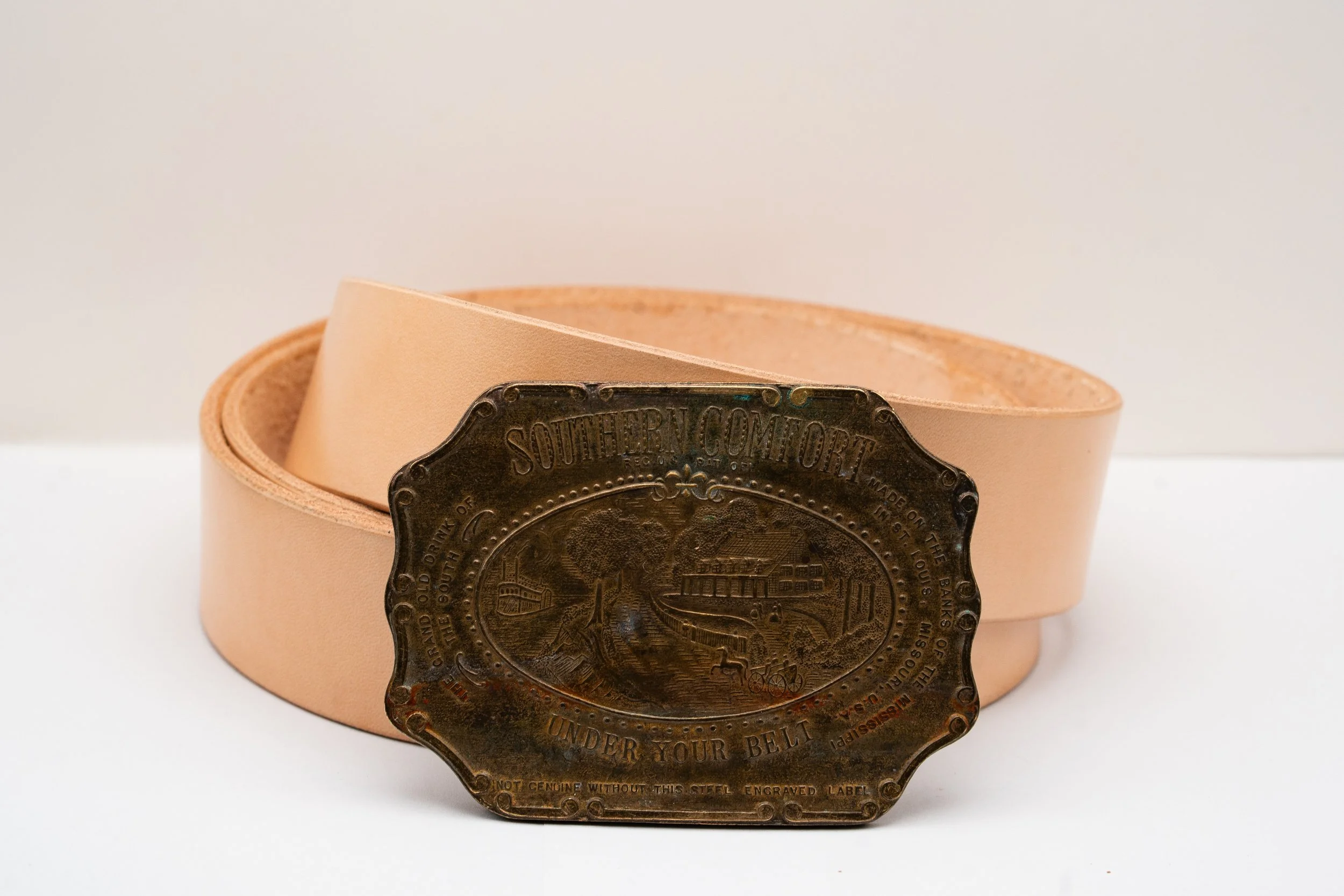 The standard RLC "Caballero" belt from $75.00 Vintage Harmony buckle w/ RLC "Caballero" belt in Cognac brown - Includes removable solid brass key ring $165.00 Vintage hammered metal buckle w/ RLC caballero belt $140.00 Vintage Cold Mountain Jasper buckle, w/ RLC Belt in Cognac brown $140.00 Sold out Vintage 1970's American Eagle "E Pluribus Unum" buckle w/ RLC "Caballero" belt from $95.00 Vintage dancing couple buckle w/ RLC "Caballero" belt from $95.00 Vintage 1970s solid brass Levi Strauss & Co. buckle w/ RLC "Caballero" belt from $95.00 Vintage Chambers western belt buckle w/ RLC "Caballero" belt from $95.00 Vintage Southern Comfort advertising belt buckle w/ RLC "Caballero" belt from $95.00
